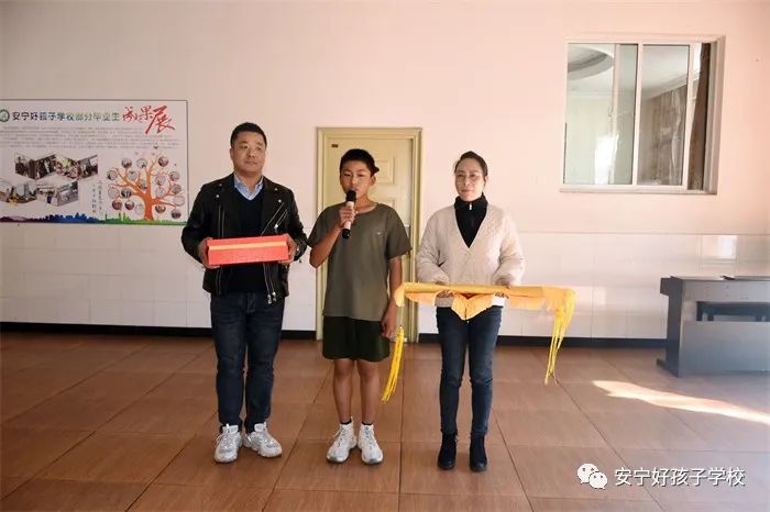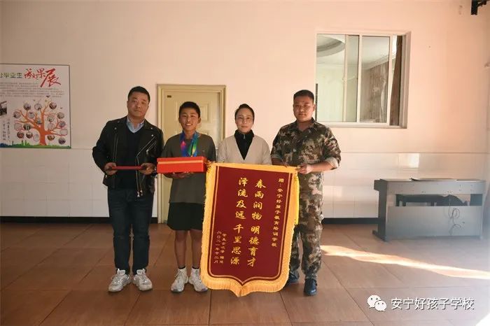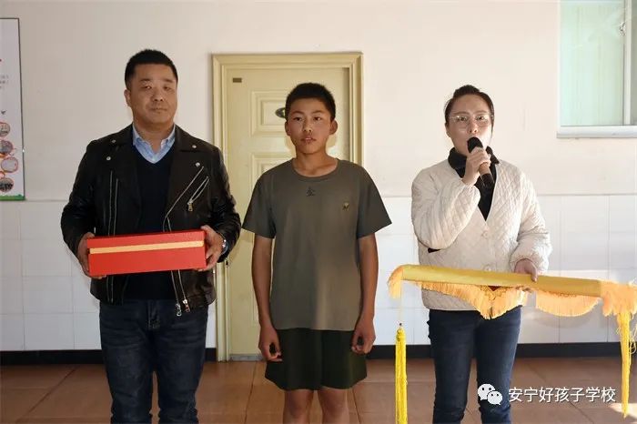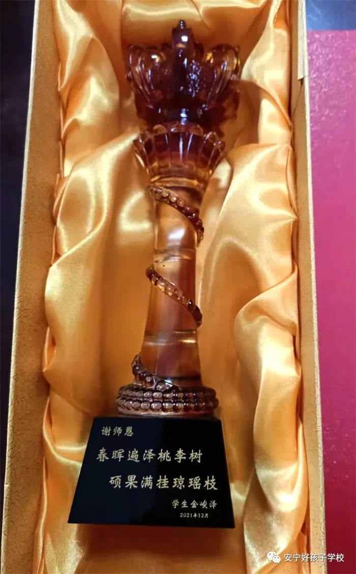 潤物無聲,感恩有聲。為表達謝意,金峻澤的父母將一面繡有“春雨潤物 明德育才,澤流及遠 千里思源”字樣的錦旗贈給學校,將一個印有“春暉遍澤桃李樹,碩果掛滿瓊瑤枝”的獎杯贈給孩子的班主任瞿老師,以此感謝學校、老師對孩子的諄諄教誨和無微不至的關(guān)懷,學校副校長楊玉峰代表學校接下了這面沉甸甸的錦旗。這面錦旗和這個獎杯,飽含著家長的真摯情感,也蘊藏著老師們愛的情懷。