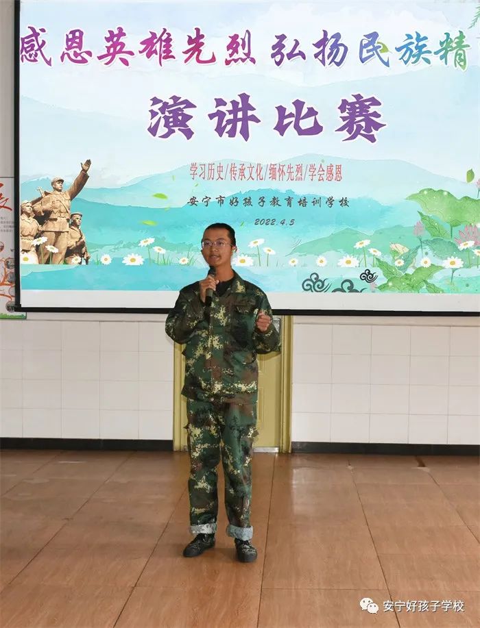 緊接著,開展了以“感恩英雄先烈 弘揚民族精神”為主題的演講比賽。賽場上,12名選手激情飽滿、意氣風發(fā),用洪亮的聲音、真摯的情感,緊緊圍繞主題,講述了一個個革命先烈的感人故事。
