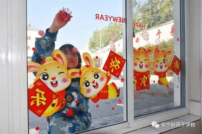 鑼鼓聲聲辭舊歲,張燈結(jié)彩迎新年。2023年1月19日至21日,為迎接兔年春節(jié)的到來,我校停課開始籌備新年的各項(xiàng)準(zhǔn)備工作。師生們在對校園全面大掃除后,就用彩帶、燈籠、剪紙等飾品裝束著校園。無聯(lián)不成春,有聯(lián)春更濃。除夕上午,又把之前精心準(zhǔn)備好的賀歲春聯(lián)貼上門,校園頓時(shí)充滿濃濃的年味兒。經(jīng)過三天的忙碌,校園內(nèi)張燈結(jié)彩,到處洋溢著濃郁的節(jié)日喜慶氛圍!大家都在以一顆翹首以盼的心等待兔年新春的到來......