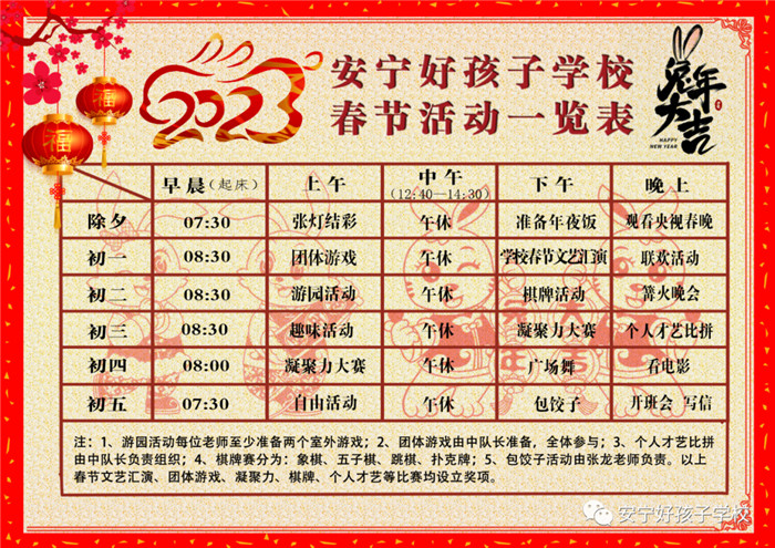學(xué)校準(zhǔn)備豐富多彩的活動,就是希望孩子們能在這里過一個(gè)開心快樂、意義非凡的春節(jié)。