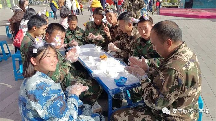 傍晚,孩子們幫著學(xué)校廚師們?yōu)閹熒臏?zhǔn)備的美食端上餐桌。