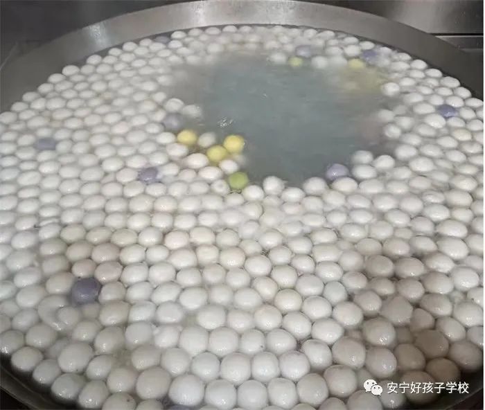 包湯圓開始了,工作人員拿出提前準(zhǔn)備好的糯米面、花生餡、芝麻餡、紫薯餡,大家一起和面、分團(tuán)、包餡兒、封口,不一會兒,一個個白白胖胖的湯圓新鮮出爐,耐心地等待著同學(xué)們把自己帶回家。