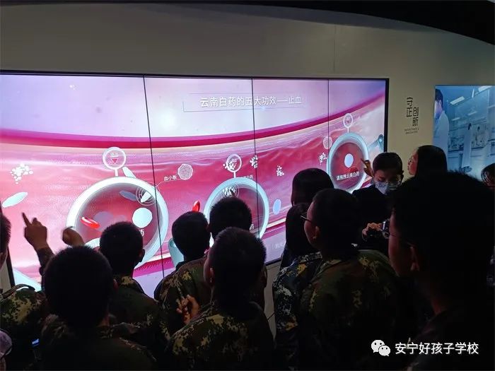 研學第二站——云南白藥體驗館,通過觀看視頻體會云南白藥在立足當下、展望未來中,如何守護生命與健康。并通過親身感受,體驗高科技、智能化在日常生活中帶來的便捷、神奇與魅力。