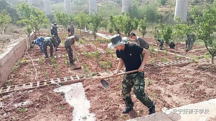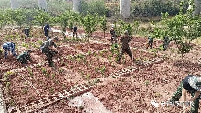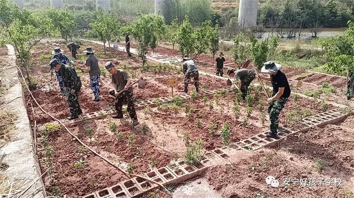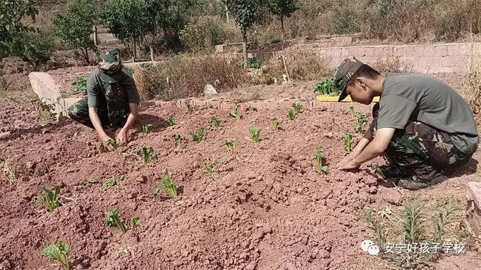 理論必須與實踐相結(jié)合,在老師的示范、指導下,同學們熱火朝天地和老師一起翻土、栽種、施肥、澆水……經(jīng)過一個上午的辛苦勞作,秧苗終于有了自己的新“家”,它們排著隊,迎風挺立著。同學們額頭上閃爍著汗珠,鞋子上、雙手上沾滿了塵土,可發(fā)自內(nèi)心的開心與幸福卻在臉上展露無疑。