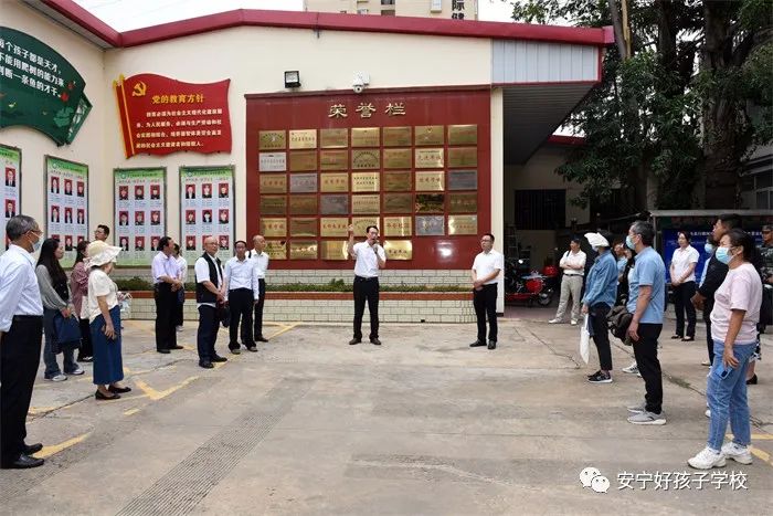 2023年6月8日,昆明市關(guān)工委未司項目指導(dǎo)辦主任趙久詩,副主任劉讓和、丁慧及昆明市各縣(市)區(qū)未司工作領(lǐng)導(dǎo)在安寧市未司辦主任李庭貴、共青團(tuán)安寧市委書記高源、副書記徐濟(jì)炳等領(lǐng)導(dǎo)的陪同下,蒞臨我校調(diào)研指導(dǎo)工作。
