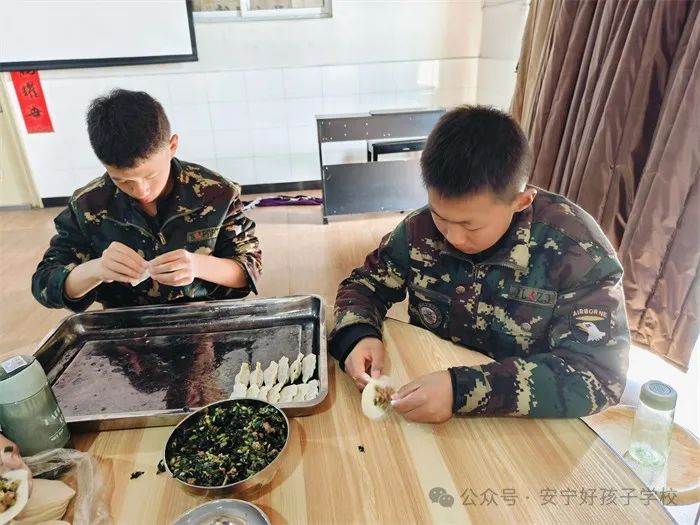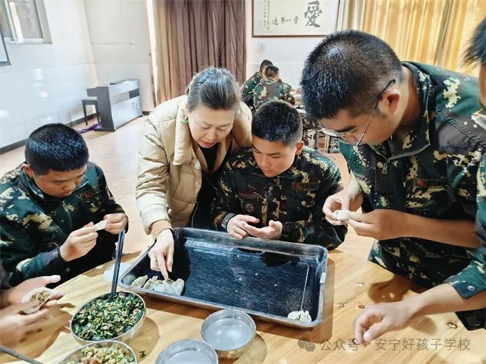 下午三點,活動在學校餐廳舉行。食堂廚師們把餃子餡調好后,各班主任和同學們就一起開心地包起了餃子。老師們一會兒做“督導員”,一會兒捋起袖子加入到包餃子的強大陣營當中,師生同樂的暖意沁人心脾。