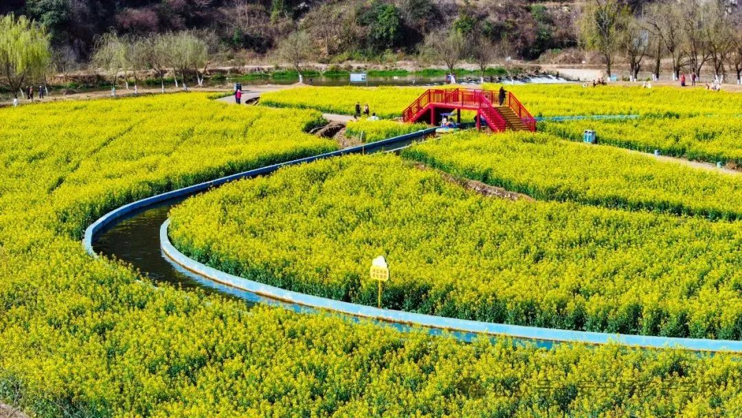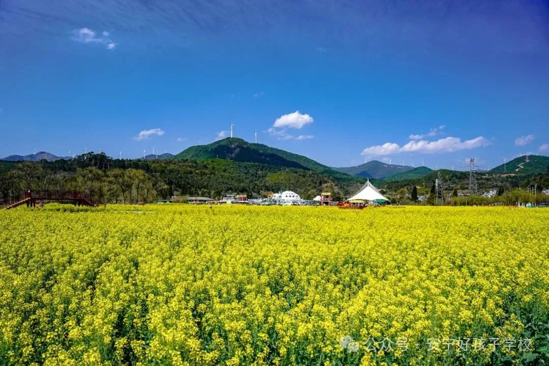 “油菜花開春意濃,滿目金黃惹人醉!毖巯,正是油菜花盛花期,一朵朵、一簇簇的油菜花,競(jìng)相怒放,金黃色的花海猶如地毯般覆蓋著田野,美如大自然的油畫,煞是惹人喜愛!讓人不禁想去尋芳踏青、賞花觀景;ê=鹄擞縿(dòng),花香襲人,沁人心脾。伴著泥土的芬芳,徜徉在蜜蜂、蝴蝶載歌載舞的花田,如同在斑斕繽紛、流金溢彩的童話世界遨游。大家情不自禁閉上眼細(xì)數(shù)春天的腳步,爭(zhēng)先恐后在金黃鋪就的美景里,搶著上鏡,和春天撞個(gè)滿懷。放眼望去,花海與藍(lán)天白云、遠(yuǎn)山田野、村莊河流相映成趣,勾勒出一幅田園春景圖。