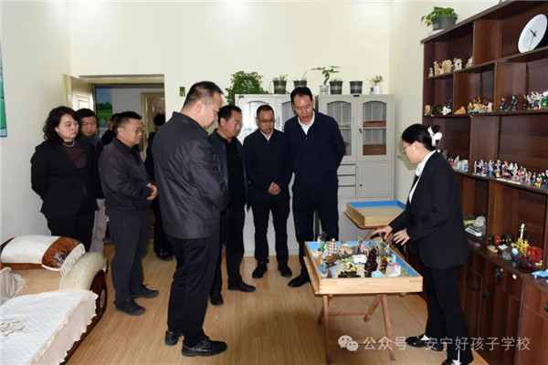 李書記一行懷著對學校的關(guān)心、關(guān)切之情,親切地走進學校的辦公樓、教學樓、心理輔導室、學生宿舍等進行全面查看。在走訪心理輔導室時,還耐心聽取了我校心理輔導老師解讀學生沙盤案例,深入了解學校心理輔導工作的開展情況。隨后,在多媒體教室觀看了學校教學活動短片,更直觀、全面地了解了學校的辦學情況。