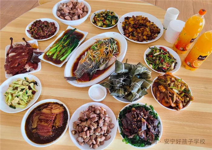 傍晚,一個個香氣撲鼻的粽子端上了桌,一桌桌色香味俱全的盛宴便呈現(xiàn)在大家眼前。孩子們一邊吃著豐盛的晚餐,一邊迫不及待地解開升騰著熱氣的粽子,心滿意足地品嘗著自己的“作品”,笑容分外甜蜜。鏡頭下,孩子們不時向父母老師道祝福,和同學相共勉。