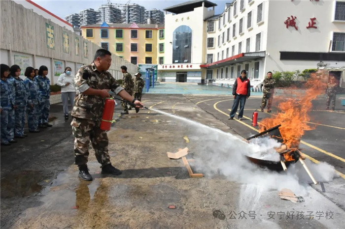 最后,張老師現(xiàn)場演示滅火器的使用方法,并指導在場師生親手操作,熟悉常用類型滅火器“一提、二拔、三握、四壓”的正確使用方法,進一步提高師生在突發(fā)火情時的滅火處理能力。全體師生認真觀看了現(xiàn)場滅火器使用演示后,有序地逐一上場實操,對模擬火源進行撲滅演練,真正做到掌握基本的消防實操技能。