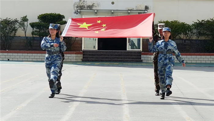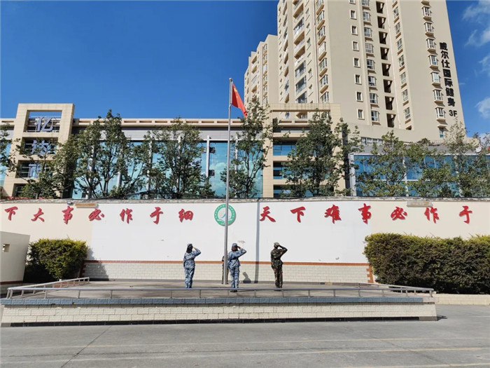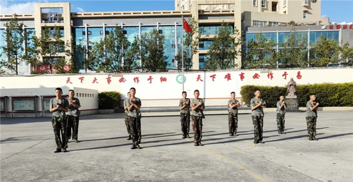首先,進行的是基本隊列表演!吧韵ⅲ×⒄......”隨著指揮員的口令,同學(xué)們按規(guī)定完成了停止間轉(zhuǎn)法、齊正步行進與立定、敬禮與禮畢等一至八個訓(xùn)練科目,每個動作都令行禁止,整齊的臂線、鏗鏘的步伐、嘹亮的口號,無不展現(xiàn)了同學(xué)們“站、立、行”的隊列規(guī)范和良好的精神風(fēng)貌。
