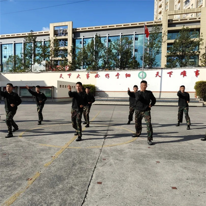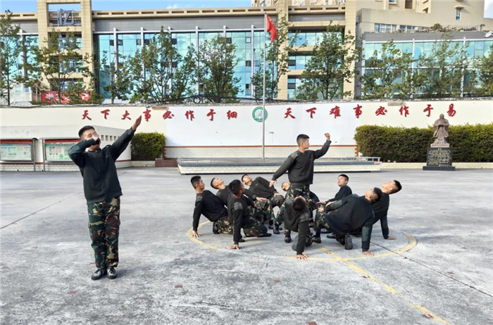 其間,三個方隊穿插表演的《擒敵拳》氣貫長虹。男生們剛勁有力,步伐穩(wěn)健,毫不拖泥帶水,看得人熱血沸騰;女生們英姿颯爽,意氣風(fēng)發(fā),每一招都虎虎生風(fēng),盡顯英勇之姿。整個表演過程中,每個方隊成員們配合默契,動作整齊劃一,每一個抬手、每一個踢腿都充滿力量,彰顯著他們平日里刻苦訓(xùn)練的成果。