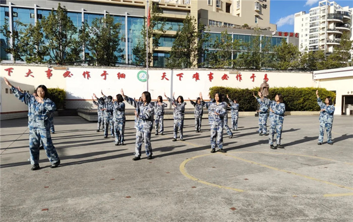 此后,一方隊給我們帶來了舞蹈《相親相愛》。在歡快的音樂聲中,同學(xué)們手拉手、肩并肩,用靈動的步伐、優(yōu)美的姿態(tài)和充滿感染力的笑容,將青春的活力與團結(jié)的力量完美融合,詮釋了《相親相愛》的深刻內(nèi)涵,讓人感受到了集體的凝聚力和向心力。