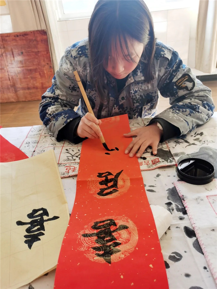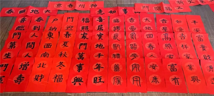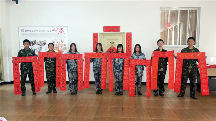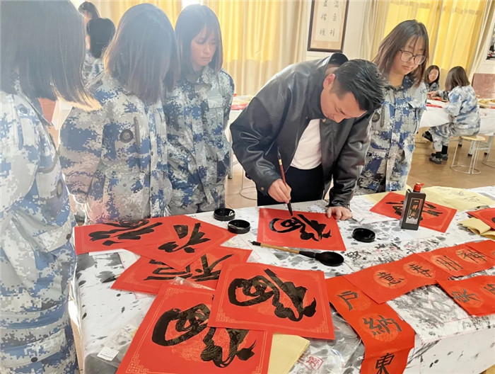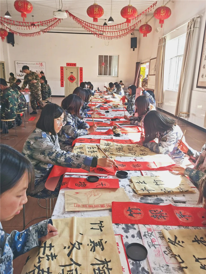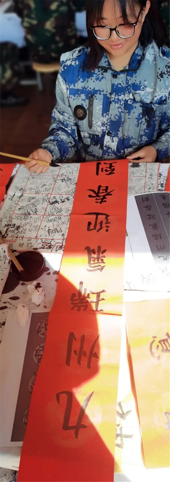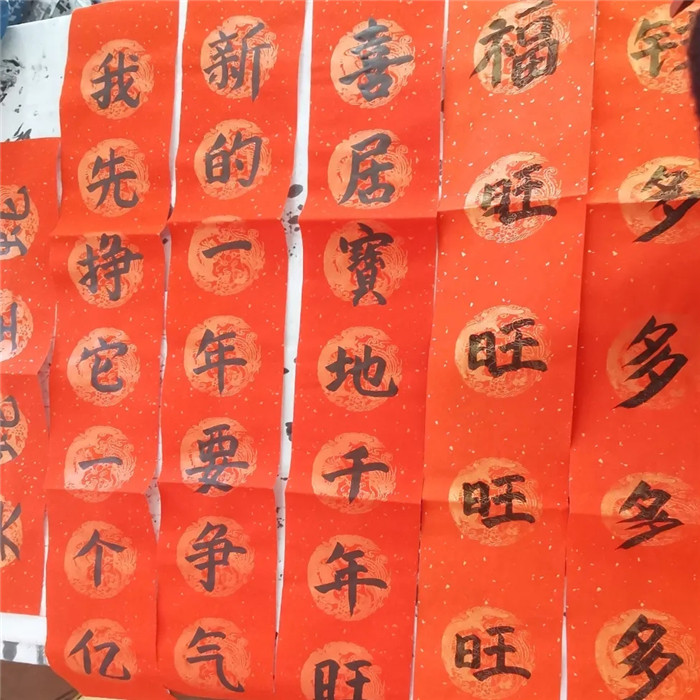 春聯(lián)紙上,孩子們筆走龍蛇。有的筆法雖顯稚嫩,卻充滿童趣;有的運筆嫻熟,字體剛勁有力。春聯(lián)內(nèi)容豐富多樣,有贊頌祖國繁榮昌盛的豪邁之語,有抒發(fā)家庭幸福美滿的溫馨之言,還有祈求學(xué)業(yè)進步的懇切之詞。不一會兒,一副副對仗工整、寓意吉祥的精妙詞句便在同學(xué)們的筆下應(yīng)運而生,傳遞出的皆是對新年的美好祝愿。老師寫的福字更是獨具特色,雄渾大氣,無不飽含著對幸福生活的美好向往,F(xiàn)場,紅彤彤的紙張映照著孩子們燦爛的笑顏,新春的喜悅氣息如春風(fēng)般撲面而來。