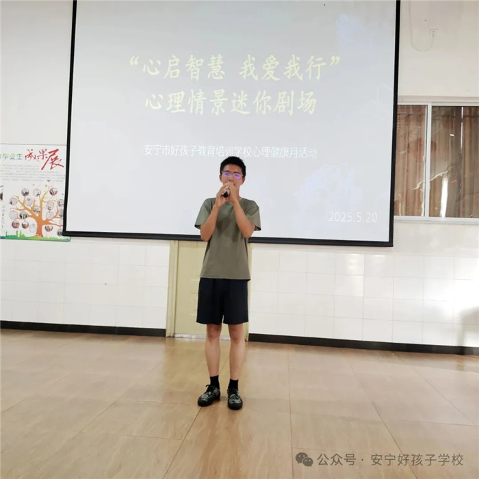 “情緒猜猜猜”活動(dòng)里,“激動(dòng)”“焦慮”“嫉妒”等10種情緒成為“主角”。同學(xué)們踴躍上臺(tái),用極具感染力的肢體語言和生動(dòng)表情,將不同情緒演繹得淋漓盡致。臺(tái)下同學(xué)不僅要精準(zhǔn)判斷情緒類型,還要大膽推測(cè)對(duì)應(yīng)場(chǎng)景。有的把 “考前找不到準(zhǔn)考證”時(shí)的慌亂焦慮演繹得惟妙惟肖,有的將“被沒收手機(jī)”后的委屈憤怒詮釋得入木三分。熱烈的互動(dòng)與歡笑聲中,孩子們不僅鍛煉了敏銳的觀察力,也學(xué)會(huì)精準(zhǔn)識(shí)別情緒、共情他人,更讓他們懂得:情緒并無對(duì)錯(cuò)之分,學(xué)會(huì)接納與合理釋放才是心靈健康的關(guān)鍵。