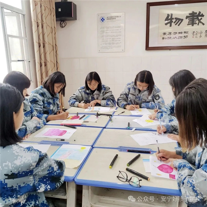 在“我手繪我心”創(chuàng)作環(huán)節(jié),藝術(shù)成為了孩子們表達(dá)內(nèi)心的獨特語言。有的同學(xué)用細(xì)膩筆觸勾勒寫實自畫像,將外在形象與內(nèi)在性格巧妙融合;有的用繽紛色彩堆砌出奶油蛋糕,讓甜蜜的渴望在紙面流淌;有的繪制身著偶像球衣的自己,展現(xiàn)逐夢路上的堅定身影;更有的勇敢以灰調(diào)筆觸直面內(nèi)心的陰霾,讓迷茫與困惑在創(chuàng)作中得到溫柔安放。正如維特根斯坦所言:“語言的界限即世界的界限!碑(dāng)文字難以精準(zhǔn)描繪抽象、隱秘的情感時,畫筆便成為了傾訴內(nèi)心的專屬語言。創(chuàng)作過程中,孩子們時而凝神思索,時而揮筆疾書,那些原本模糊的“心的形狀”逐漸清晰可見。