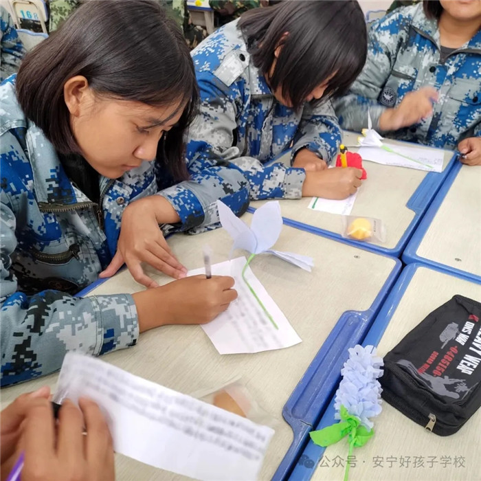 如果說“我手繪我心”是一場向內(nèi)的自我探索,那么“送你一朵幸運花”則架起了孩子與父母、師長之間情感溝通的橋梁。早在活動籌備期,心理老師便收集到數(shù)十條來自家長與教師的真摯寄語。這些飽含深情的文字被心理團隊精心制作成綴滿祝福的“幸運花”,當(dāng)孩子們滿懷期待地挑選屬于自己的那一朵,展開寫滿祝福的卡片時,濕潤的眼眶里閃爍著被愛意包裹的感動。他們紛紛回應(yīng)這份深情,有的當(dāng)即寫下回信,有的將卡片小心珍藏,那些平時難以言說的情感,在這一刻化作雙向奔赴的暖流。