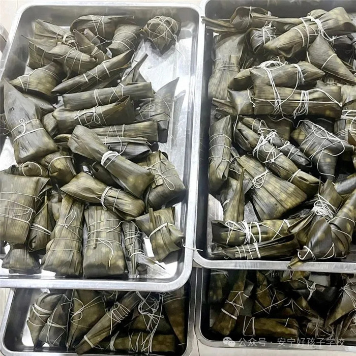 上午,學(xué)校餐廳歡聲笑語,熱鬧非凡。孩子們在老師的帶領(lǐng)下,熱火朝天地清洗粽葉,隨后,展開了如火如荼的包粽子活動。在老師的精心指導(dǎo)下,只見孩子們雙手靈巧地穿梭在翠綠的粽葉間,按照“一折葉、二盛料、三壓實、四包裹、五扎繩”的步驟,將香甜的糯米包裹進(jìn)粽葉,再用細(xì)細(xì)的棉線纏繞扎實。不一會兒,一個個形態(tài)各異、大小不一的粽子便誕生了。這些飽含美好祝福的粽子,不僅是孩子們勞動的成果,更承載著他們對傳統(tǒng)文化的熱愛。
