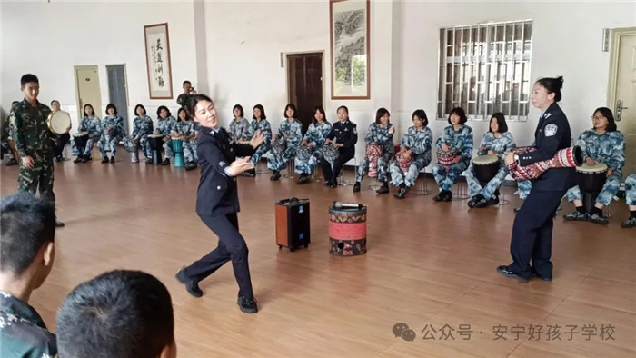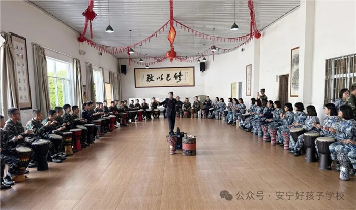 專題講座后,“鼓舞悅動煥心聲”團(tuán)體輔導(dǎo)活動將現(xiàn)場氛圍推向高潮。省二所教育矯治科副科長錢錦彩運(yùn)用前沿的“音樂療法”理念,帶領(lǐng)學(xué)生們體驗(yàn)非洲鼓、沙錘、鈴鼓等樂器的獨(dú)特魅力。從基礎(chǔ)節(jié)奏教學(xué)入手,指導(dǎo)學(xué)生掌握簡潔明快的節(jié)奏要點(diǎn),隨后引導(dǎo)大家跟隨指揮默契配合,共同演奏樂曲。