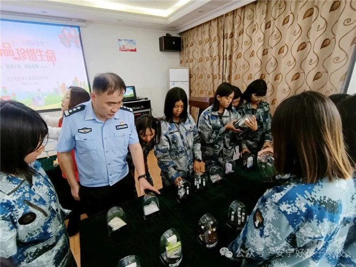 為讓抽象的毒品概念具象化,警官們還組織同學(xué)們分組有序參觀毒品仿真模型。在觀摩過程中,警官們?nèi)棠托拇鹨山饣,讓同學(xué)們對毒品的真面目有了直觀認知。同時,還積極動員同學(xué)們投身全民禁毒行動,鼓勵大家發(fā)揮“小手拉大手”的輻射效應(yīng),以“教育一個學(xué)生,帶動一個家庭,影響整個社會”的方式,凝聚全社會力量,構(gòu)建起堅不可摧的“人民禁毒網(wǎng)”,共同守護純凈社會環(huán)境。