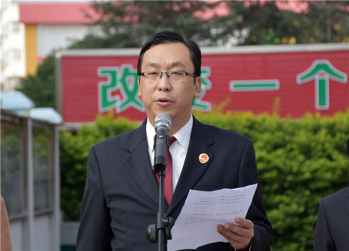揭牌儀式上,魯校長介紹了出席活動(dòng)的領(lǐng)導(dǎo)并致歡迎詞;隨后邀請(qǐng)了楊志剛檢察長與盧敏副局長為學(xué)校揭牌,全場(chǎng)響起熱烈的掌聲;隨后,楊檢察長發(fā)表了熱情洋溢的講話:“今天很高興!安寧市人民檢察院與好孩子學(xué)校7月簽訂的《未成年人陪護(hù)教育基地共建協(xié)議》,今天終于落地揭牌了。檢校合作,是深入貫徹習(xí)近平總書記新時(shí)代中國特色社會(huì)主義思想的重要舉措;是落實(shí)中央《關(guān)于加強(qiáng)專門學(xué)校和專門教育工作意見》的具體體現(xiàn);是促進(jìn)未成年權(quán)益保護(hù)和犯罪預(yù)防體系建設(shè)的有益嘗試;更是促進(jìn)未成年人健康成長的有力保障。專業(yè)的人做專業(yè)的事,好孩子學(xué)校辦學(xué)成績顯著,我們給予高度肯定!感謝好孩子學(xué)校對(duì)我市未檢工作和未成年人權(quán)益保護(hù)做出的重大貢獻(xiàn)。我們相信,基地的建設(shè),對(duì)引導(dǎo)我市廣大青少年樹立法治理念,減少違法犯罪和維護(hù)自身合法權(quán)益都具有極其重要的里程碑意義。做好未成年犯罪預(yù)防、幫扶,使命光榮,任務(wù)艱巨。今天的儀式只是個(gè)開頭,希望我們能夠以此為契機(jī),在接下來的工作中,本著共建共贏的合作原則,充分發(fā)揮雙方的資源優(yōu)勢(shì),努力把合作引向深入,確;匕l(fā)揮實(shí)效,為未成年人的健康成長創(chuàng)造良好的社會(huì)環(huán)境,為建設(shè)平安安寧作出更大貢獻(xiàn)!”